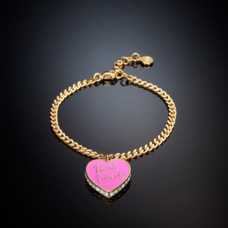 Bracciale dorato con cuore pendente di 2 cm smaltato di rosa con la scritta Best Friends e i zirconi sul profilo del cuore. Catenella per poterlo adattate.