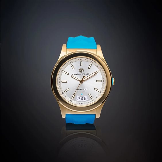 OROLOGIO CHIARA FERRAGNI BRAND LOVE PARADE WATCH - R1951102505 - Genere: Donna, Materiale e finitura cassa: Acciaio, Materiale sintetico, Misura cassa: 36mm, Spessore cassa: 8,95, Finitura cassa: Lucido, Colore cassa: Oro giallo, Vetro minerale, Materiale cinturino: silicone azzurro Chiusura: Fibbia ardiglione dorato, Movimento: Quarzo, Water resistant: 5 atm, Garanzia: Ufficiale 2 anni Chiara Ferragni Brand, Confezione: Originale Chiara Ferragni Brand