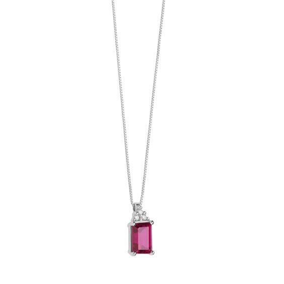 Collana Comete in oro bianco 18kt con ciondolo di diamanti taglio brillante ct 2 e rubino ottagonale ricristallizzato di ct 0.72