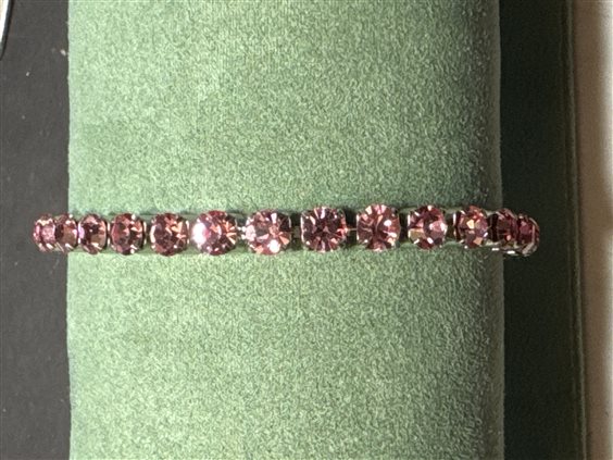 Bracciale tennis in acciaio 316L, lunghezza regolabile da 16 a 19.5 cm, con cristalli rosa. Dimensioni: cristalli Ø 5 mm