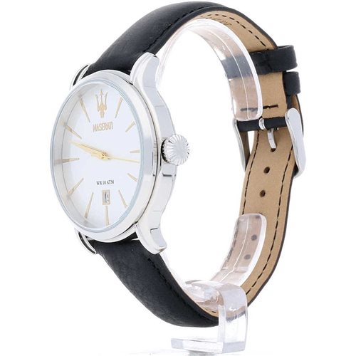 Orologio Maserati Della Collezione Epoca, Solo Tempo Con Movimento Al Quarzo, Tipo Di Cassa Tonda, Dimensioni Di Cassa: 42Mm. Cinturino In Pelle Di Colore Testa Di Moro. Resistenza All'Acqua Di 10Atm Fondo E Corona A Vite. Questo solo tempo verrà spedito con Scatola Originale Maserati + GARANZIA.