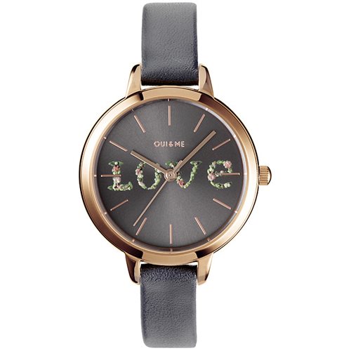 Orologio Solo Tempo Da Donna Di Oui&Me Della Collezione Petite Fleurette. Orologio Con Cassa In Acciaio Con Trattamento In Pvd Oro Rosa E Pelle Naturale Della Dimensione Di 32X39,4Mm. Cinturino In Pelle Grigio. Quadrante Di Colore Sunray Grigio E Verde Con Vetro Minerale. Chiusura: Fibbia Ardiglione. Resistenza All'Acqua: 5 Atm. La Referenza È Me010061